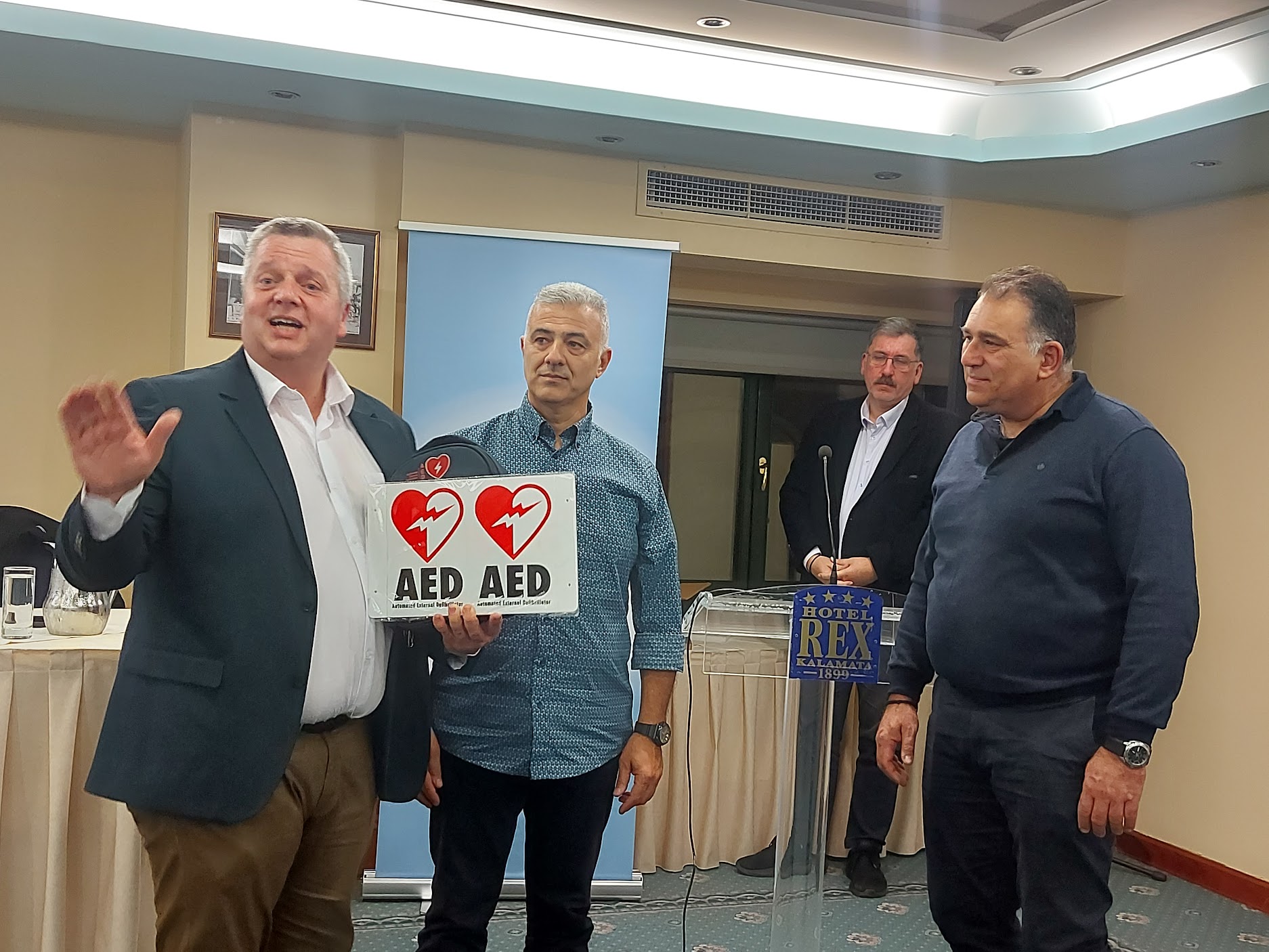 Στο πλαίσιο της εκδήλωσης, η ΠΟΜΕΝΣ προχώρησε σε μια ιδιαίτερα σημαντική και συμβολική πράξη, προσφέροντας στην ΕΣΠΕΕΜΕ έναν απινιδωτή, με σκοπό η Ένωση να τον διαθέσει σε σημείο ή υπηρεσία της επιλογής της, για την ενίσχυση της ασφάλειας των συναδέλφων.