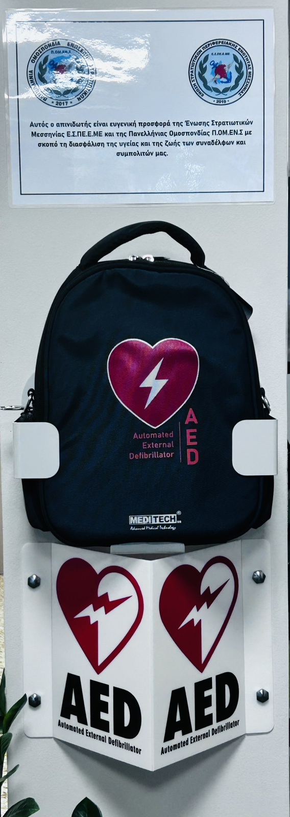 Με επιτυχία πραγματοποιήθηκε σήμερα 27-03-2026 στη Λέσχη Αξιωματικών Φρουράς Καλαμάτας η τελετή δωρεάς απινιδωτή από την Ένωση Στρατιωτικών Περιφερειακής Ενότητας Μεσσηνίας (Ε.Σ.ΠΕ.Ε.ΜΕ.) και την Πανελλήνια Ομοσπονδία Ενώσεων Στρατιωτικών (Π.ΟΜ.ΕΝ.Σ.).